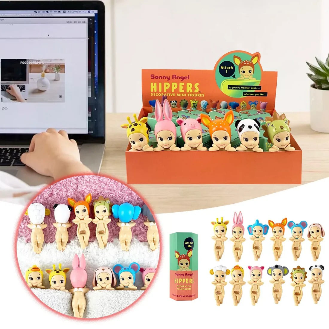 The size of the Sonny Angel Hippers is similar to the classic Sonny Angel. You can hang the Sonny Angel Hippers on any flat surface using the built-in adhesive strip.